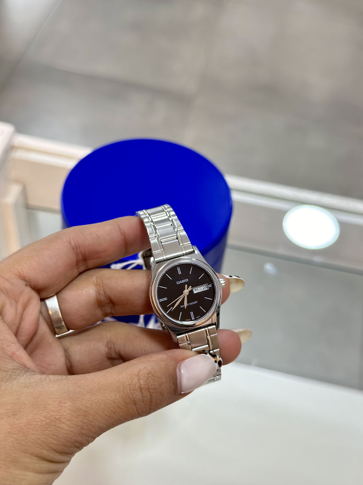 Reloj acero inoxidable, calendario, resistente a salpicaduras, casio.