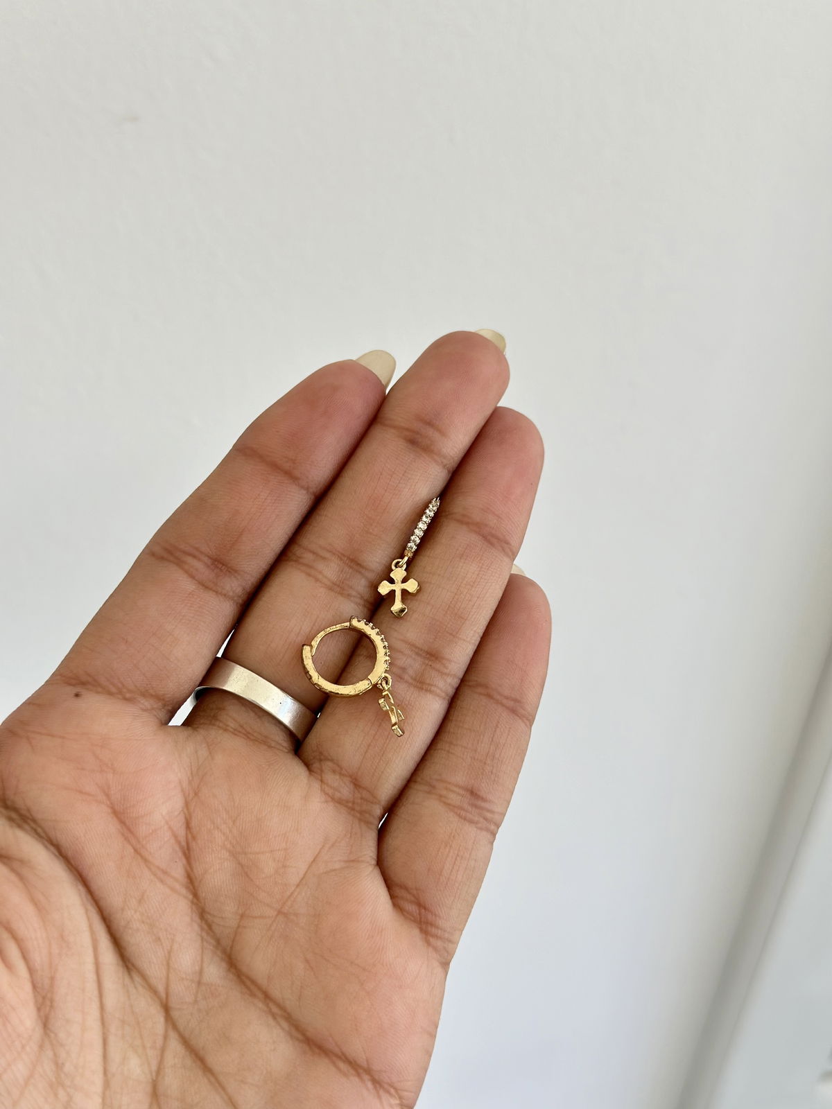 Argolla cruz 1cm cierre clip, enchapado en oro.