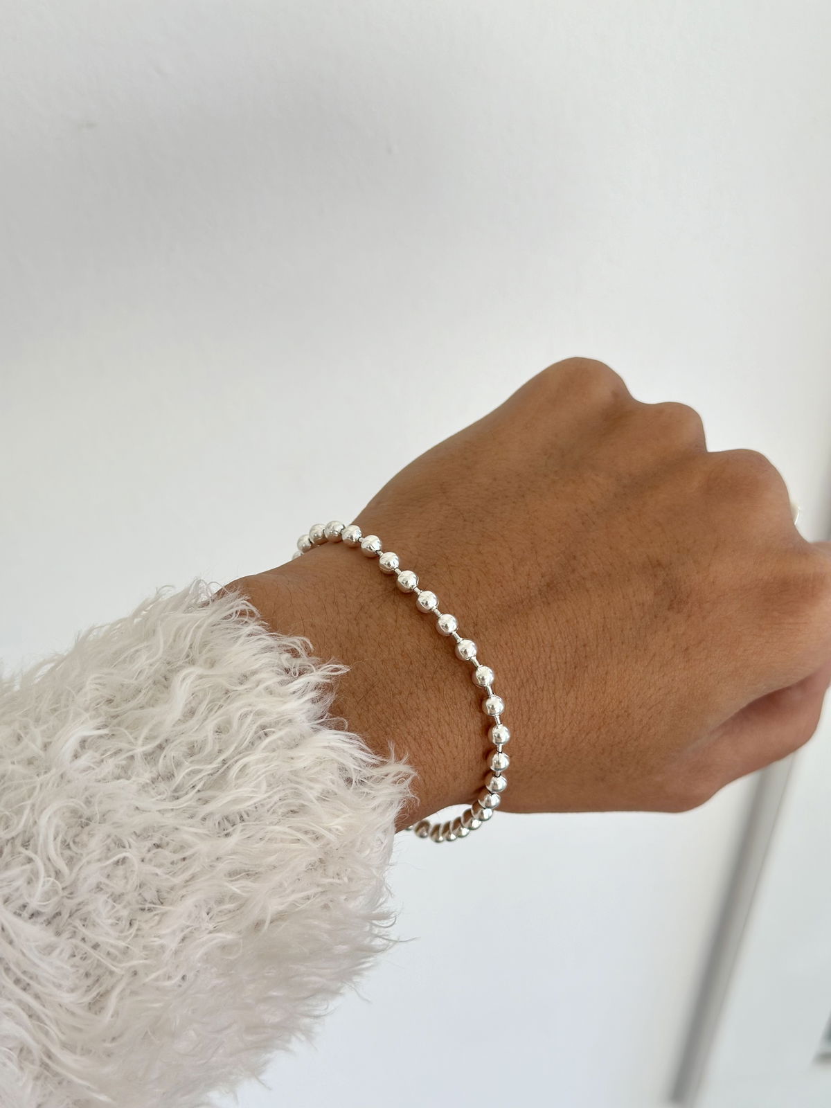 Pulsera bolitas chicas , 19cm acero blanco.