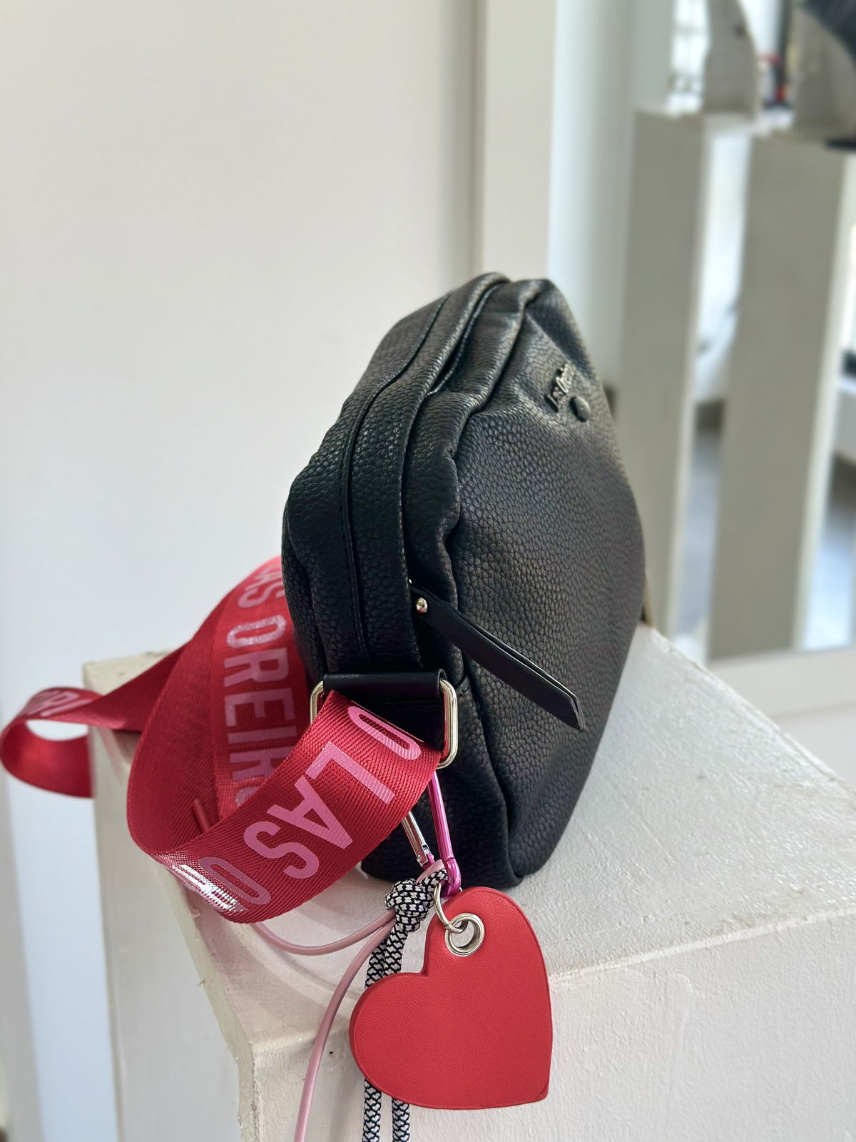 Bandolera cuerina pu, 17cm de alto, 24cm de ancho y 6cm de profundidad.