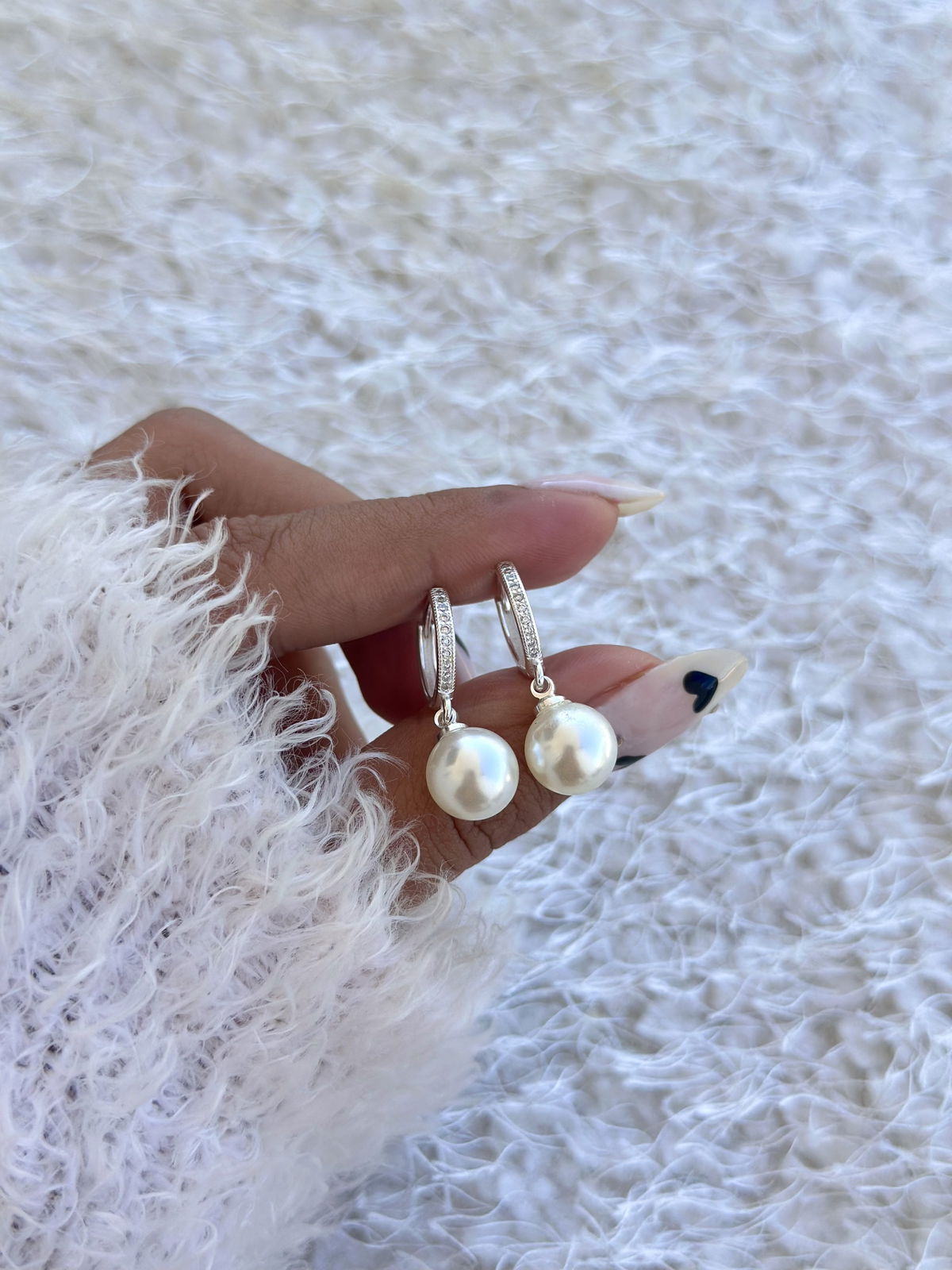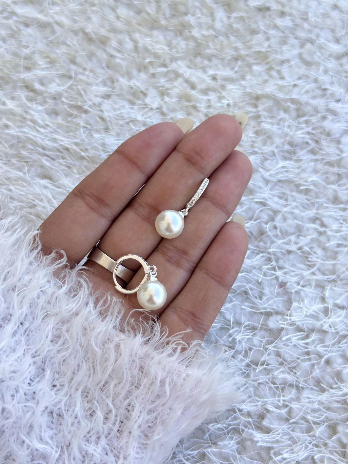 Argolla 1,3cm con micropave y perla colgante.