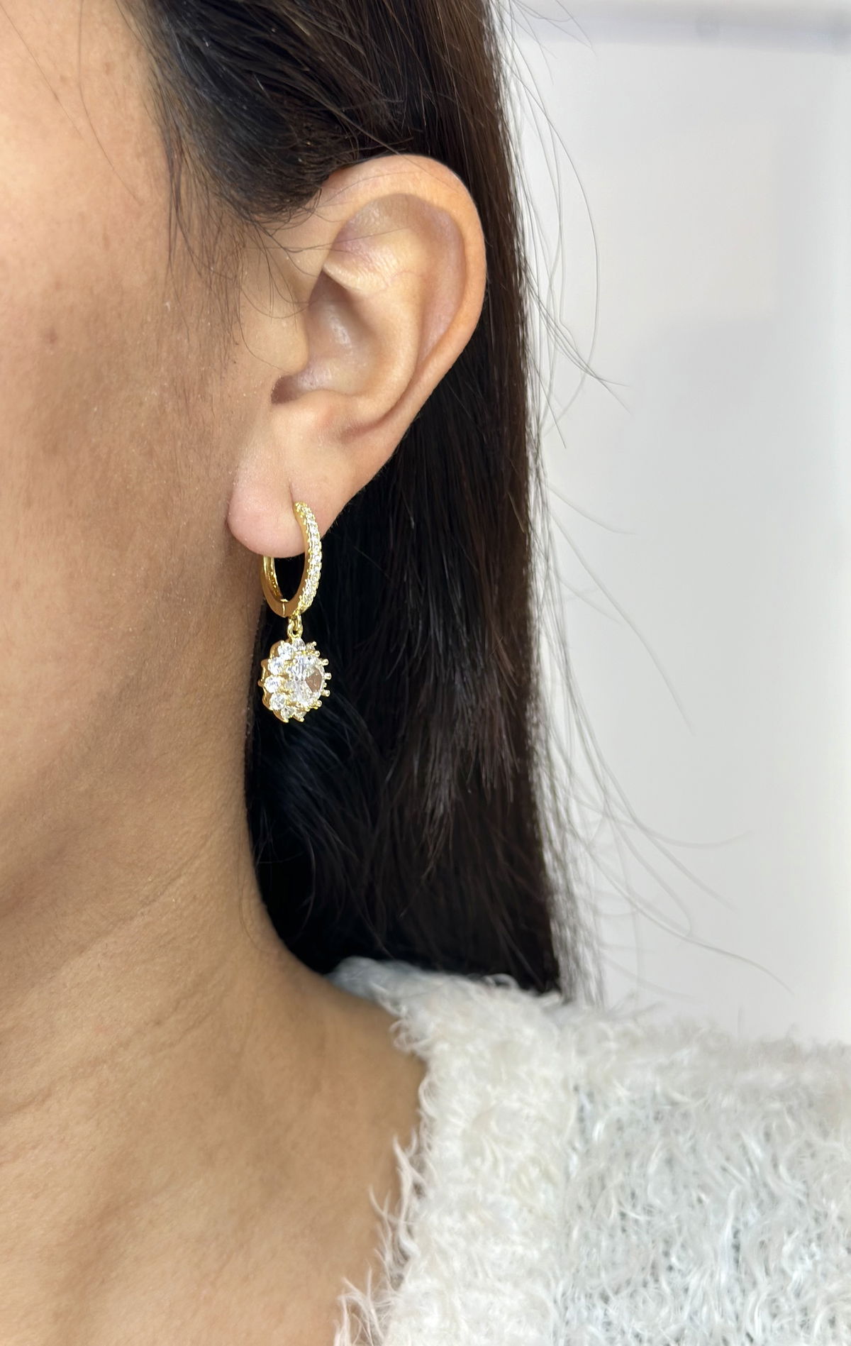 Argollas 1,5cm cierre clip con colgante acero dorado.