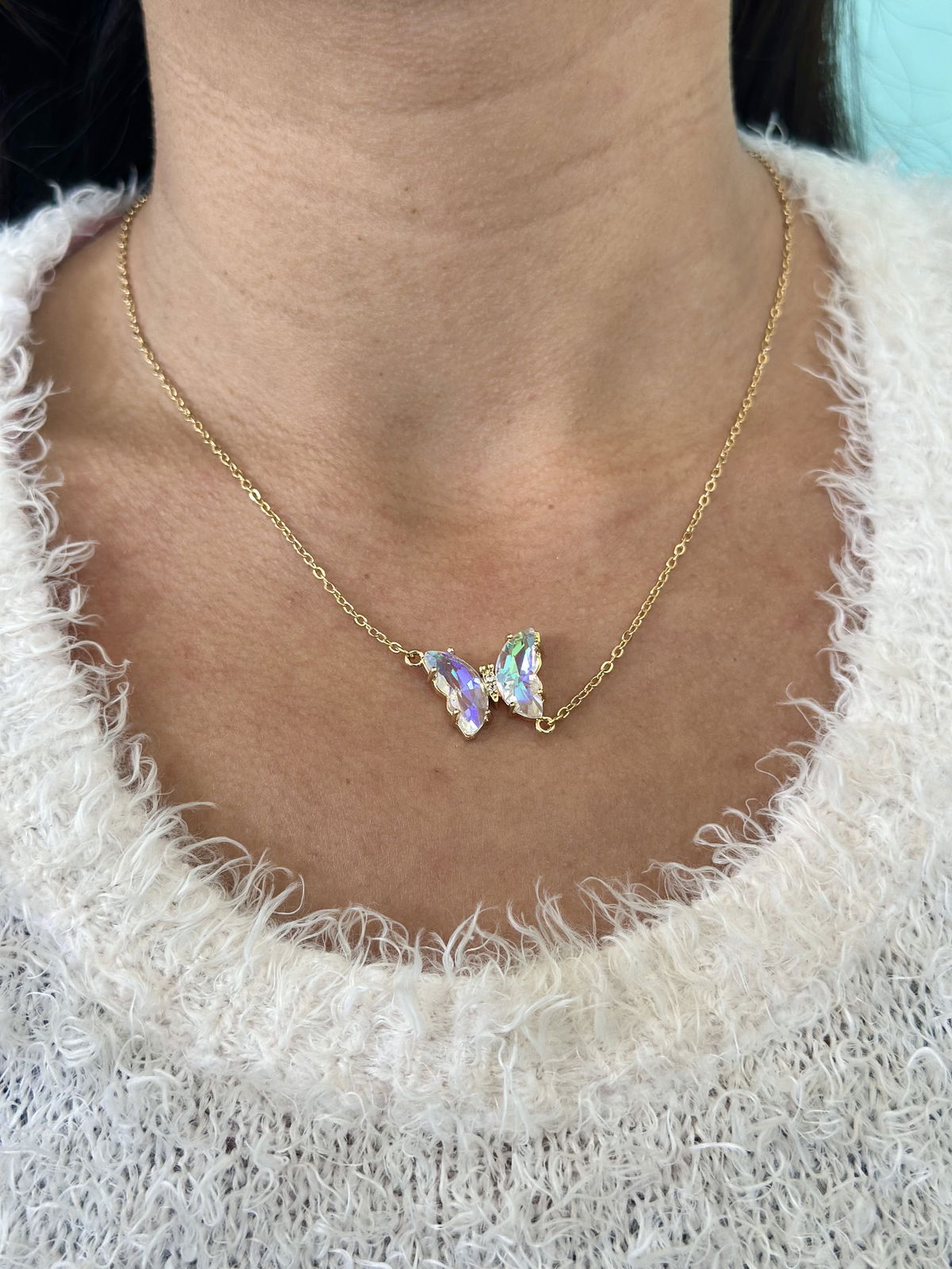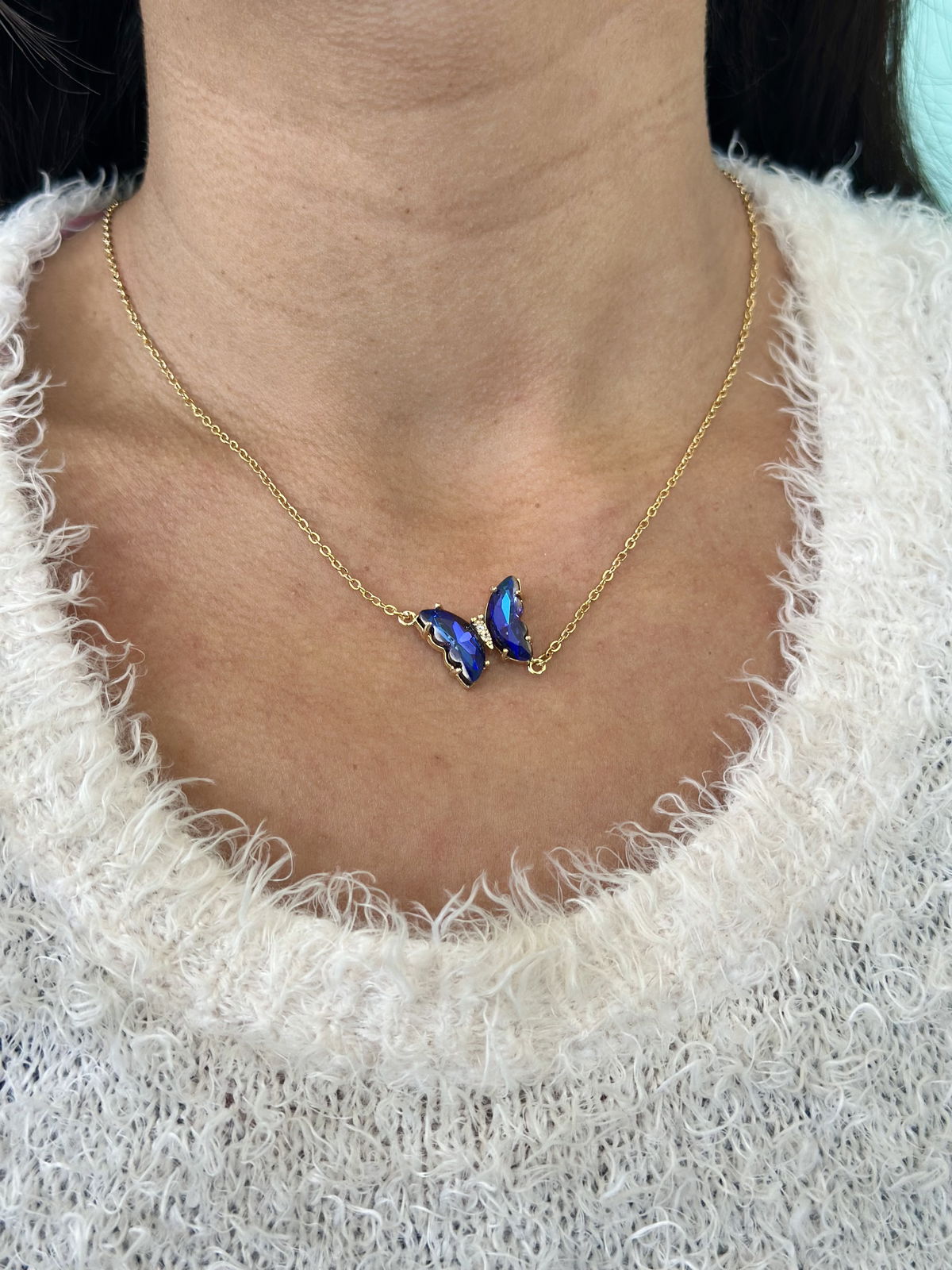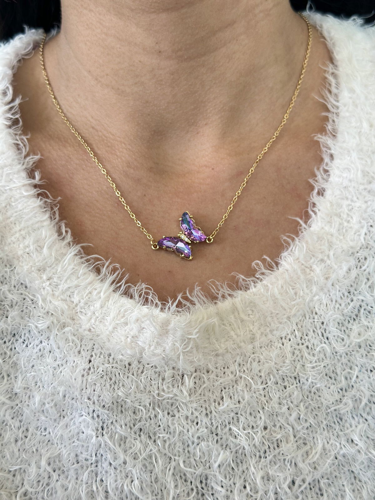 Collar 48cm acero dorado con dije mariposa.
