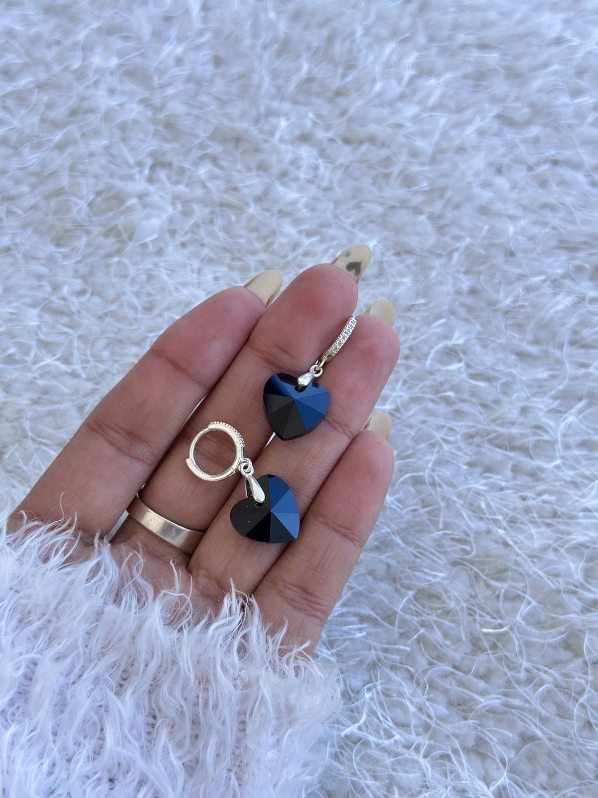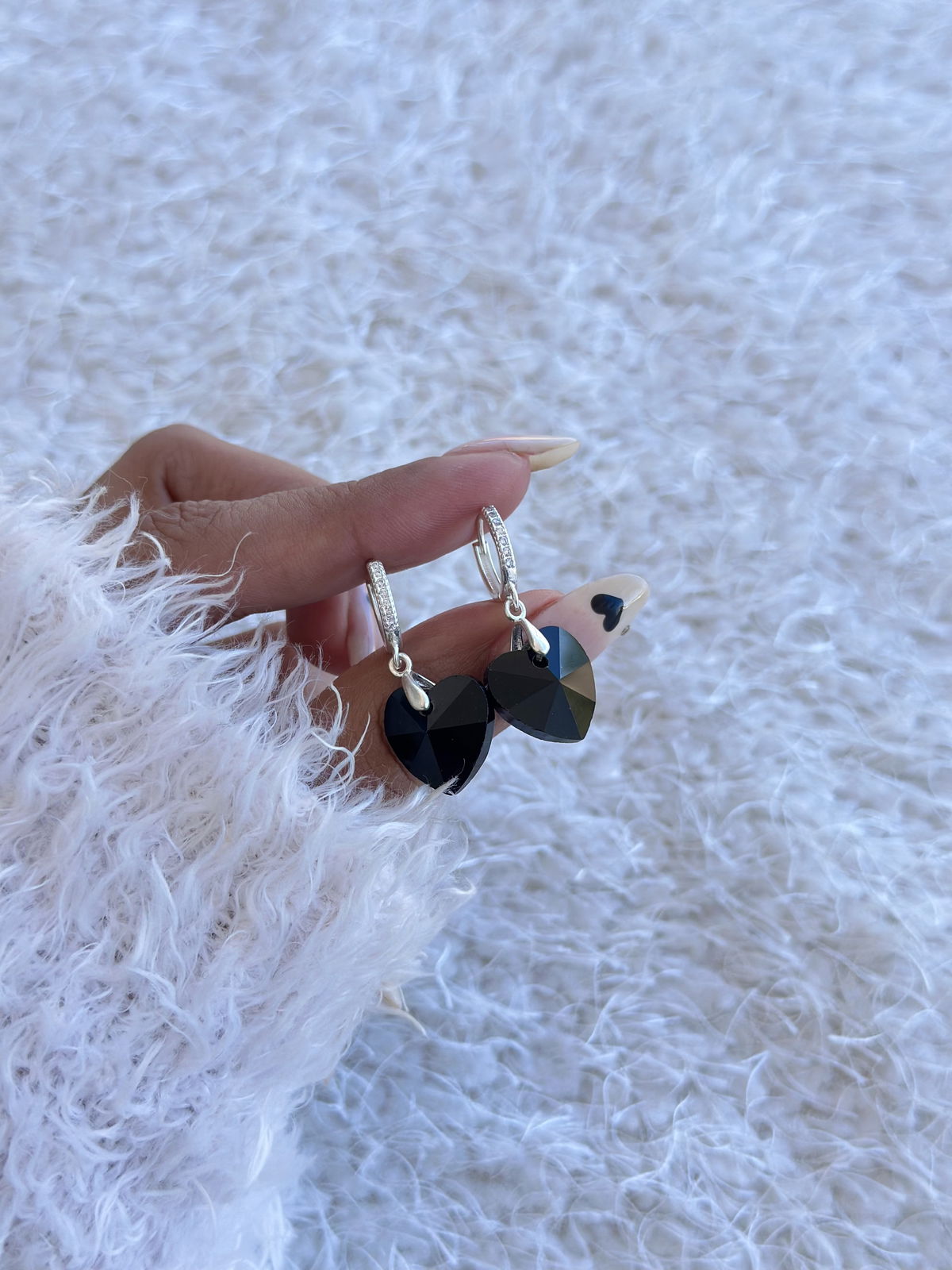 Argolla 1cm cierre clip con corazón cristal negro plata925.