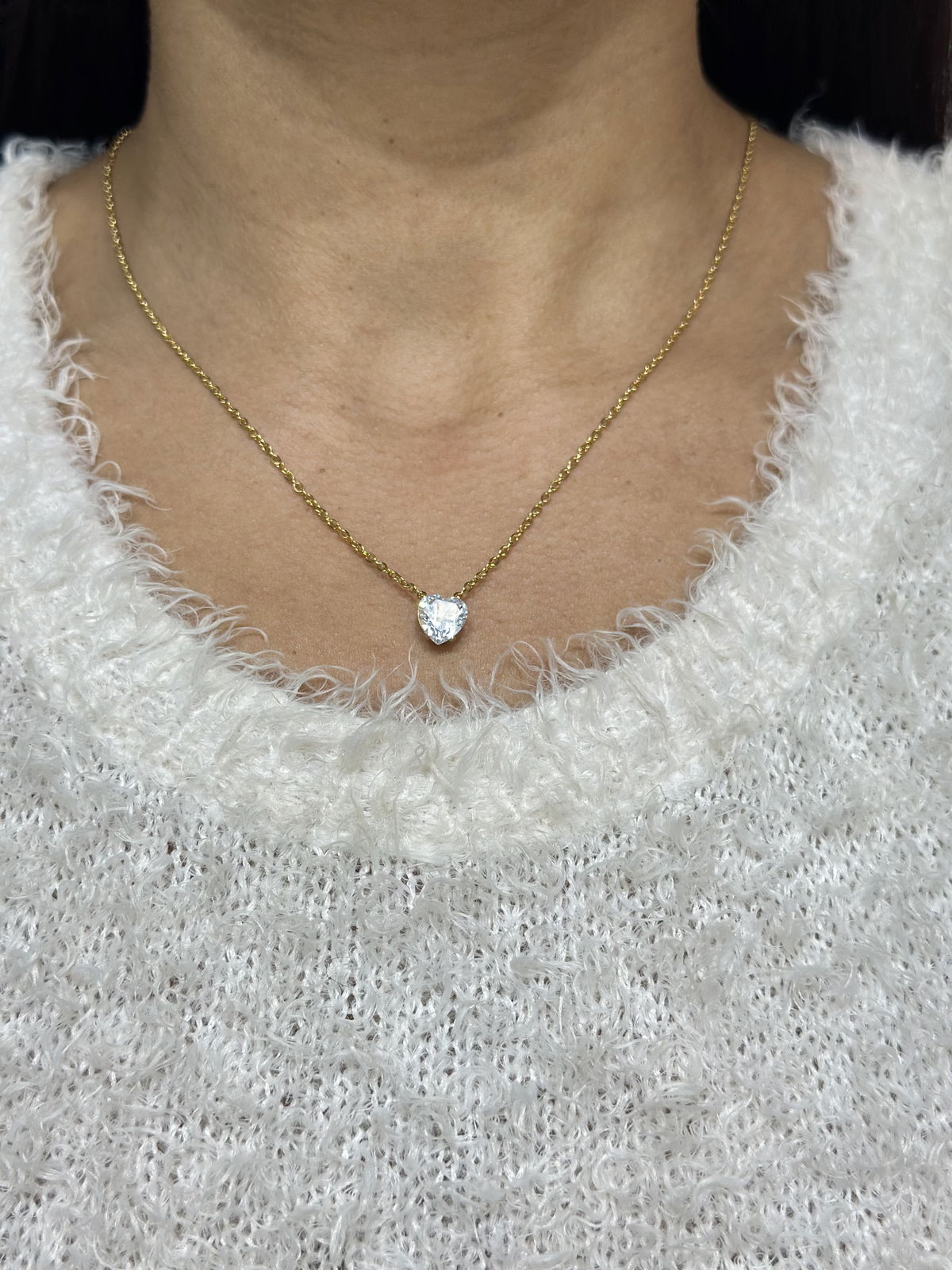 Collar 50cm acero dorado corazón cubics.
