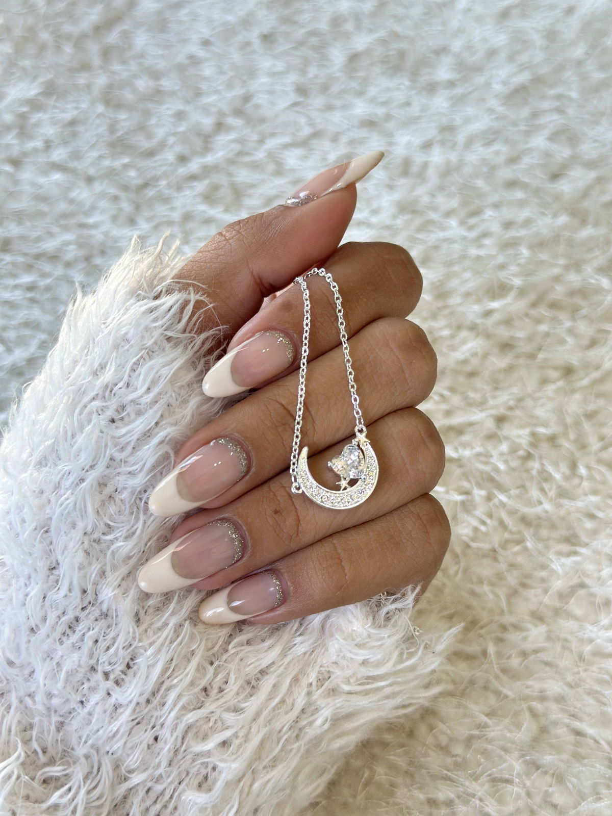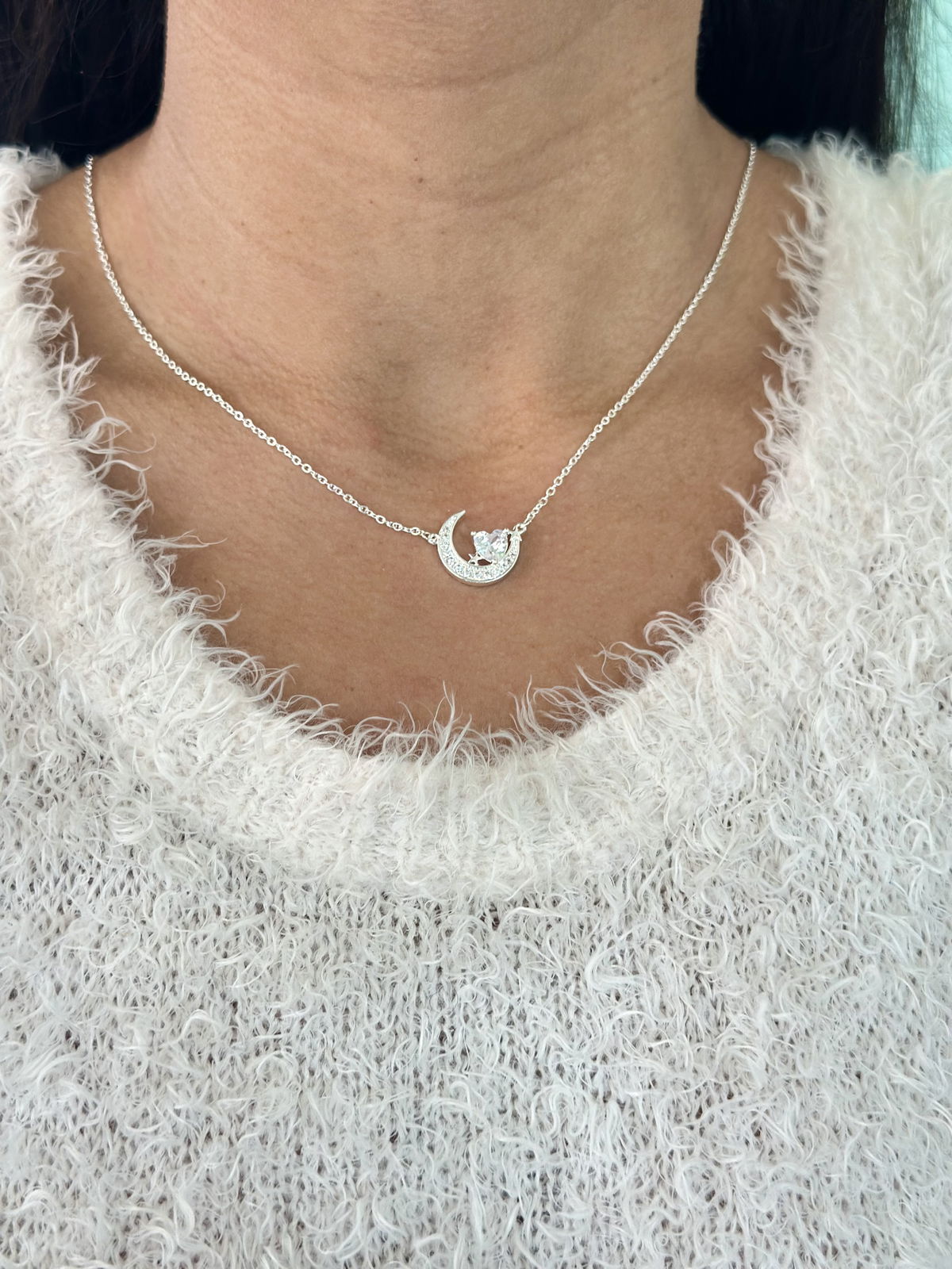 Collar luna y corazón 50cm acero blanco.
