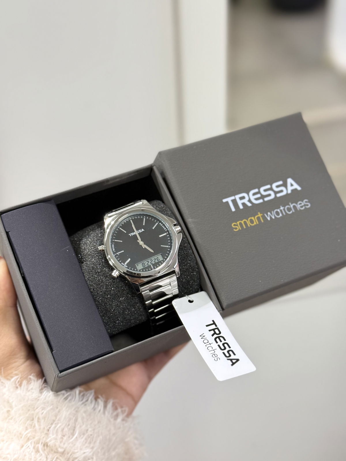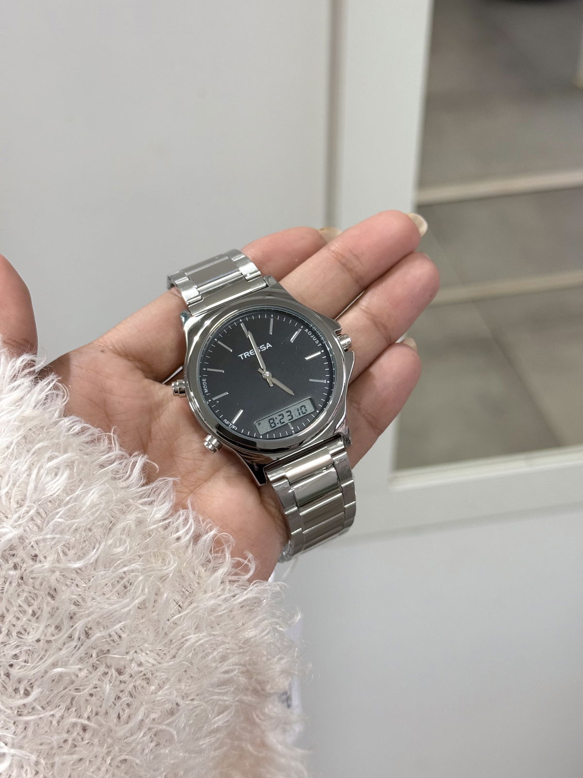 Reloj Tressa acero inoxidable, resistente a salpicaduras, reloj analógico y digital.