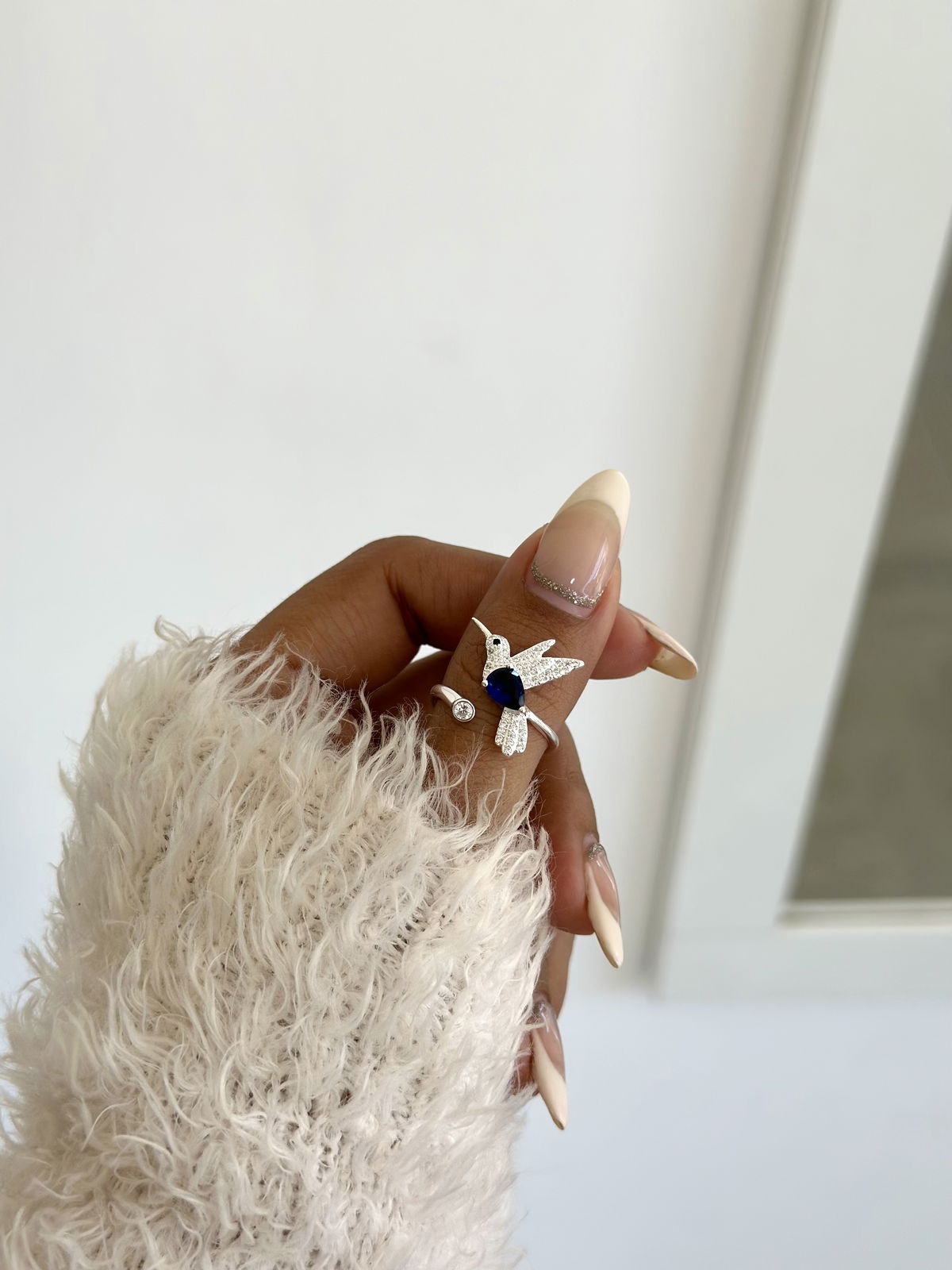 Anillo colibrí azul plata925 ajustable.