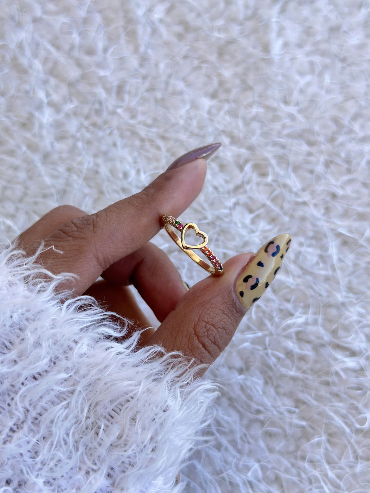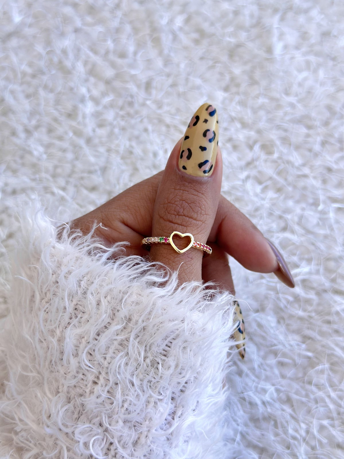 Anillo corazón piedras colores acero dorado, 18mm.