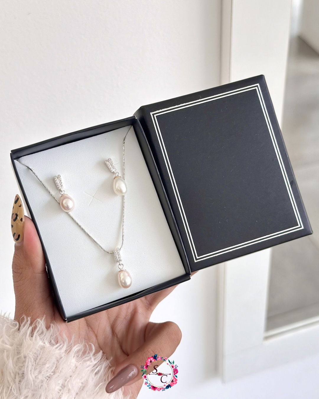 Set estuche + conjunto y aros perlas de cultivo plata925.