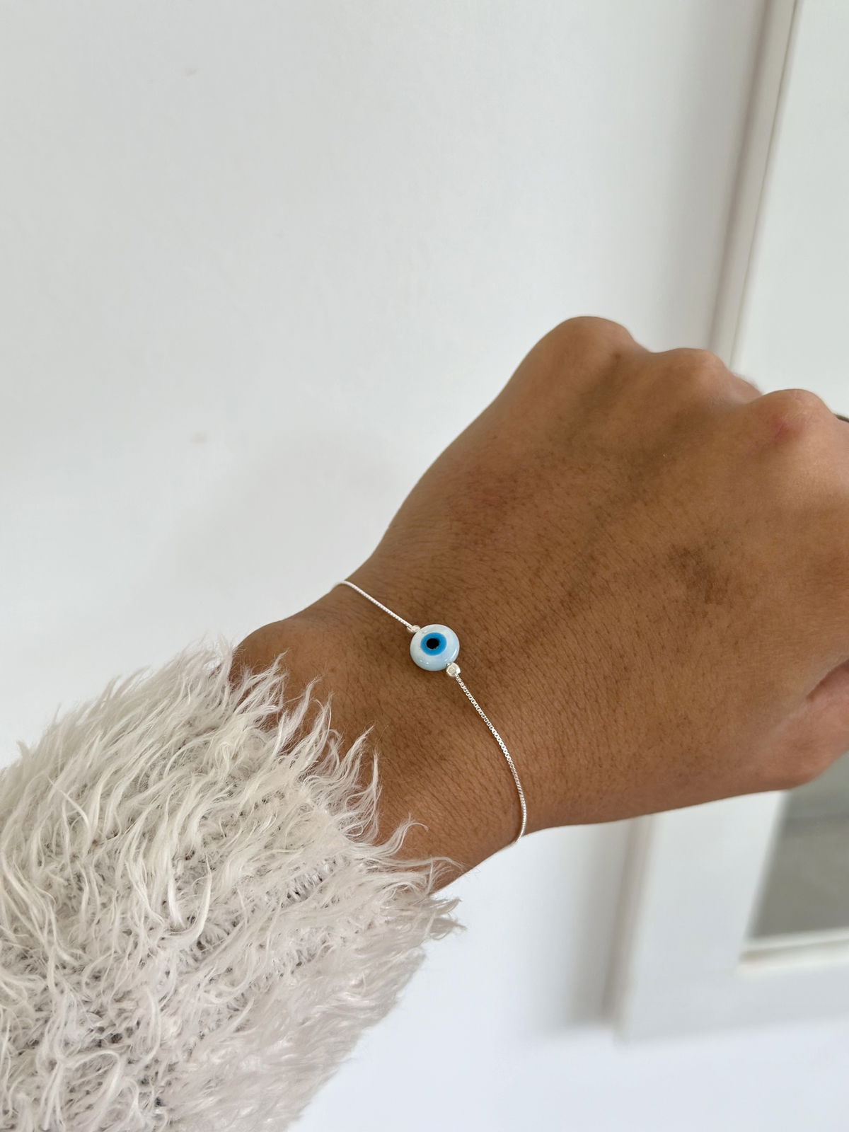 Pulsera 17cm ojito turco de nácar plata925.