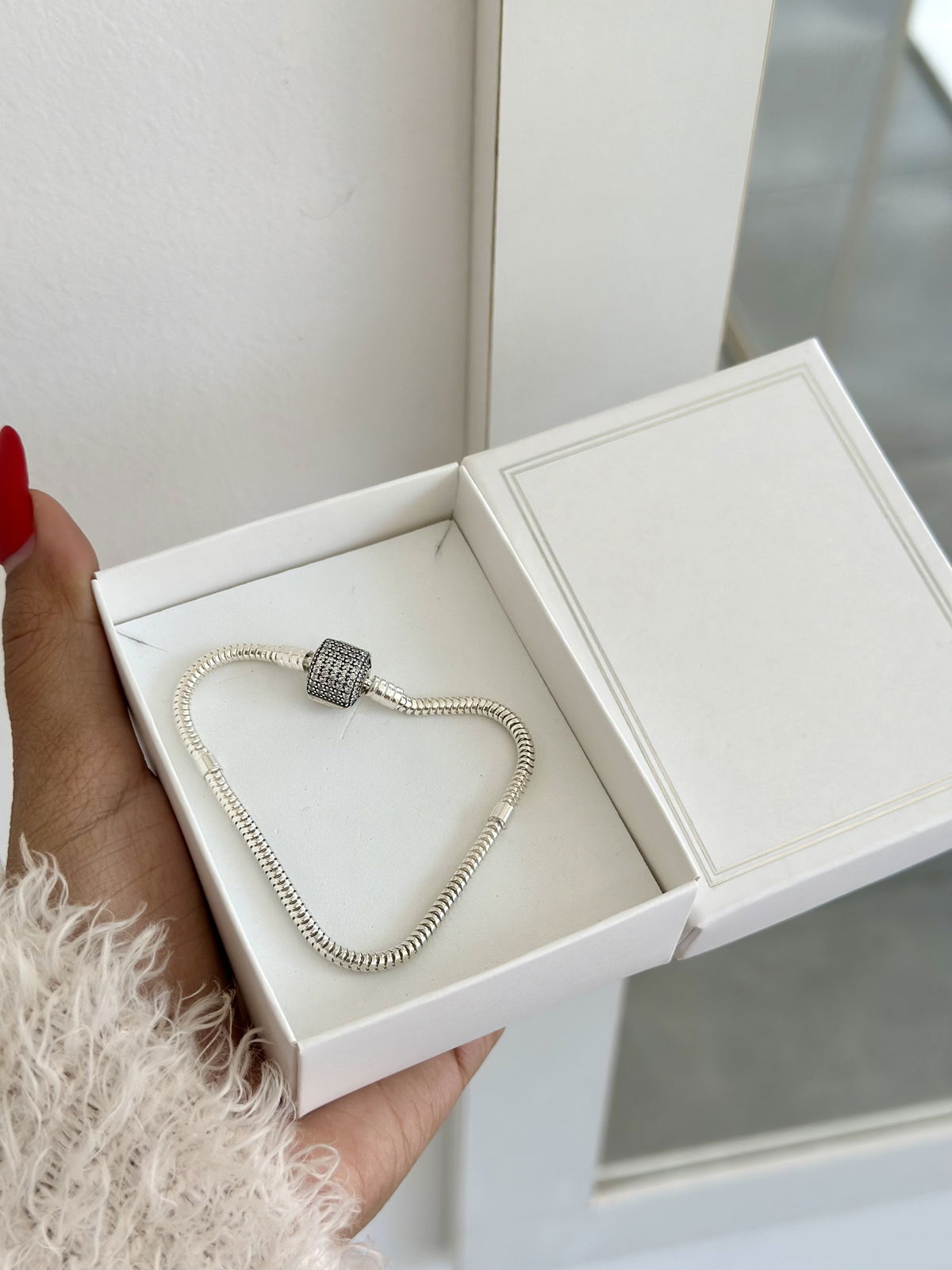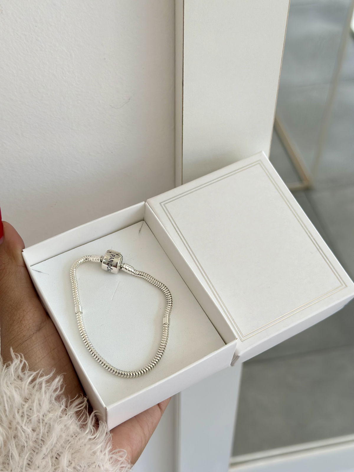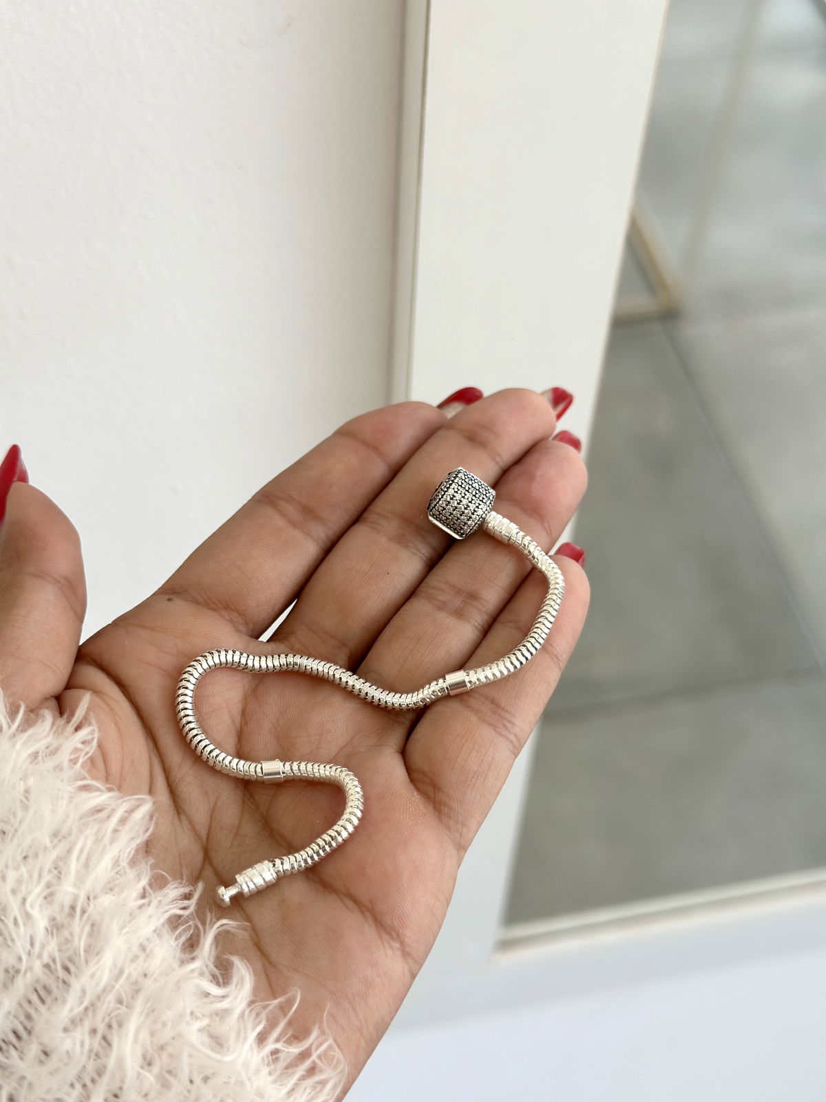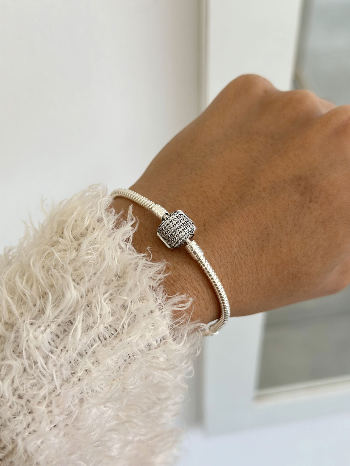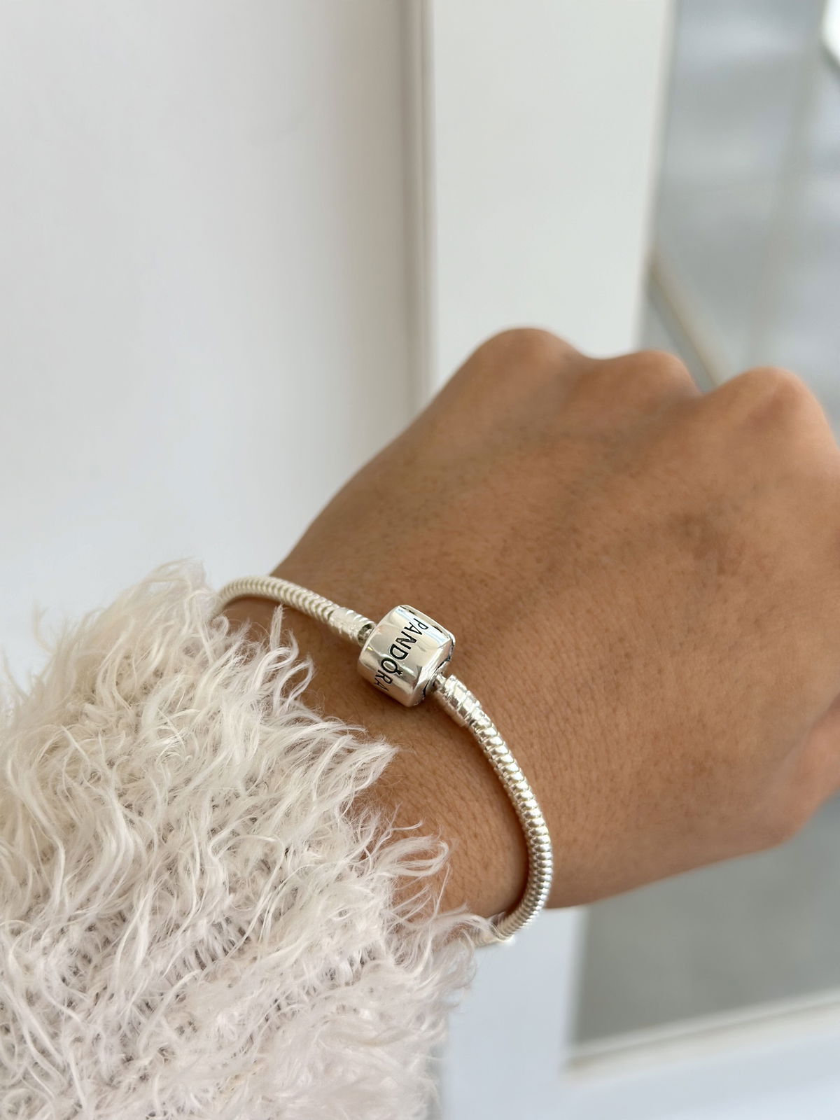 Pulsera Pandora lado liso y lado con brillo plata925.