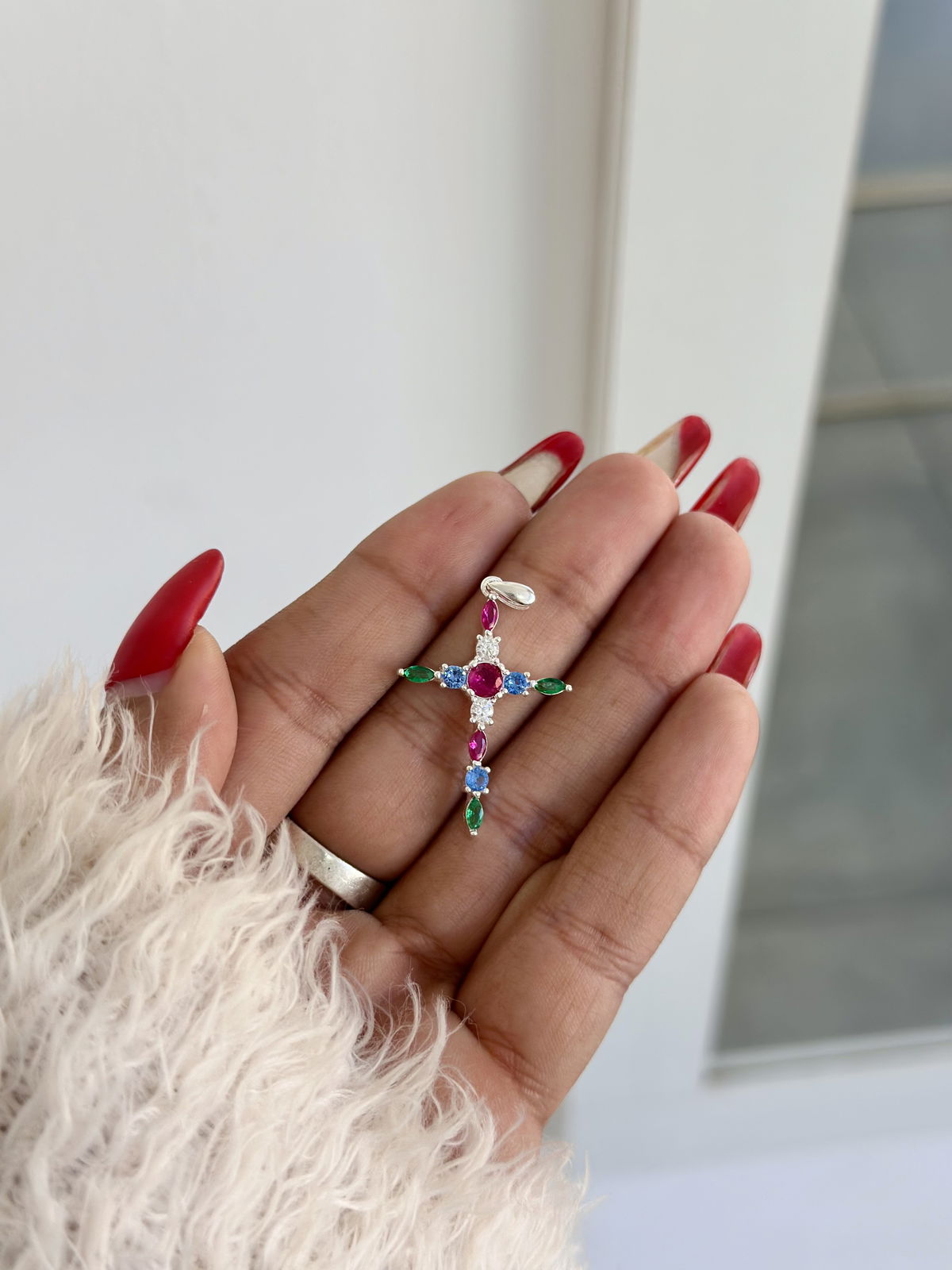 Dije cruz 2,5cm plata925 cubics colores.