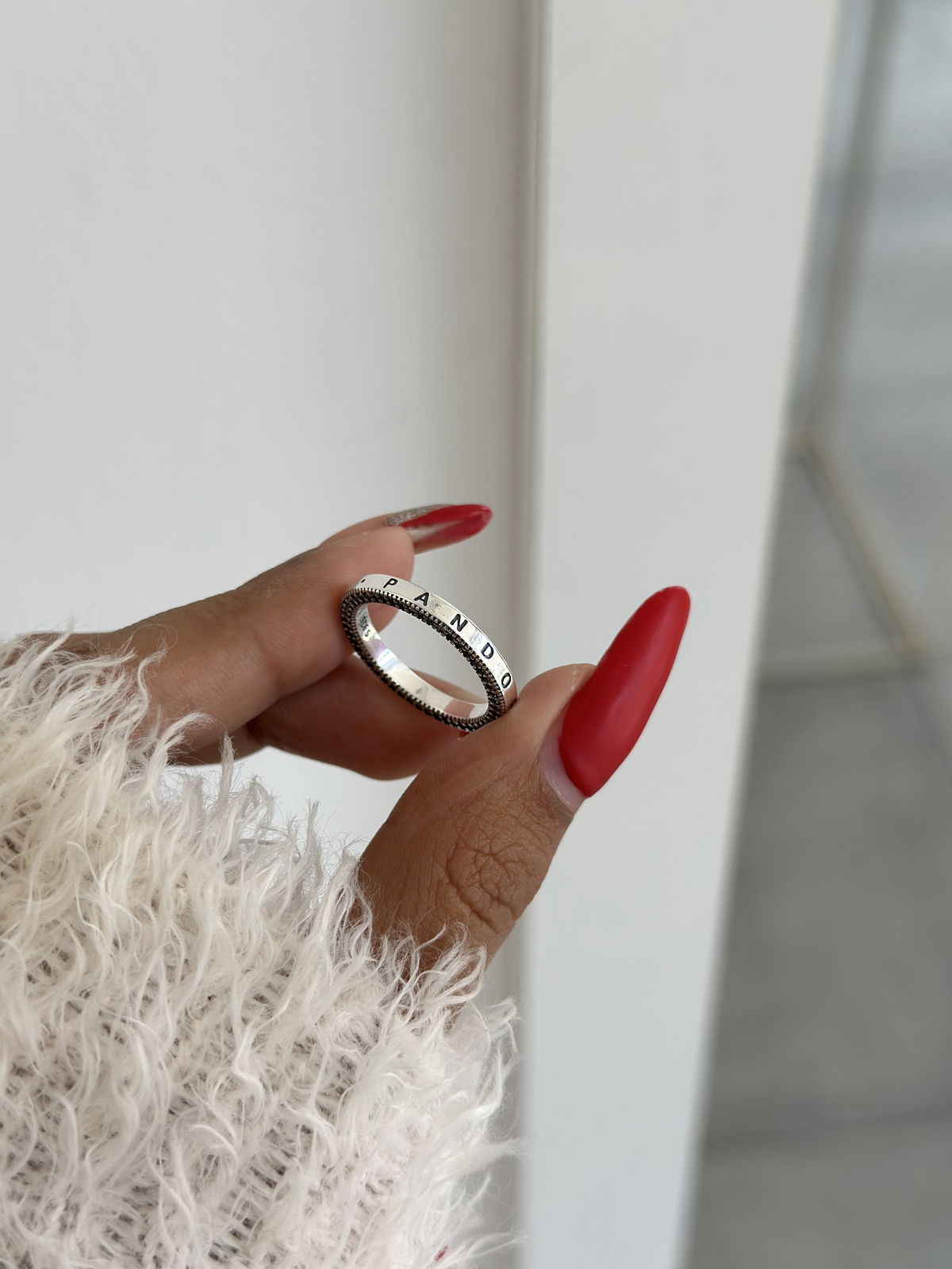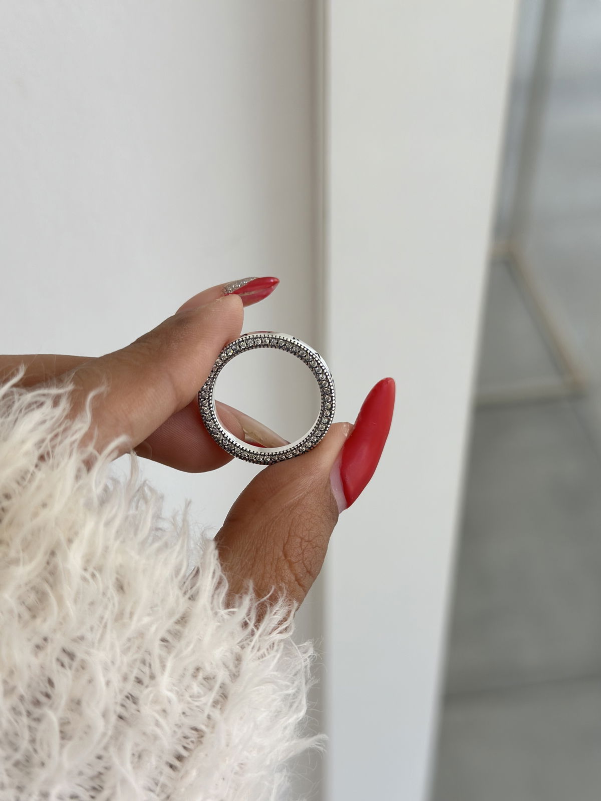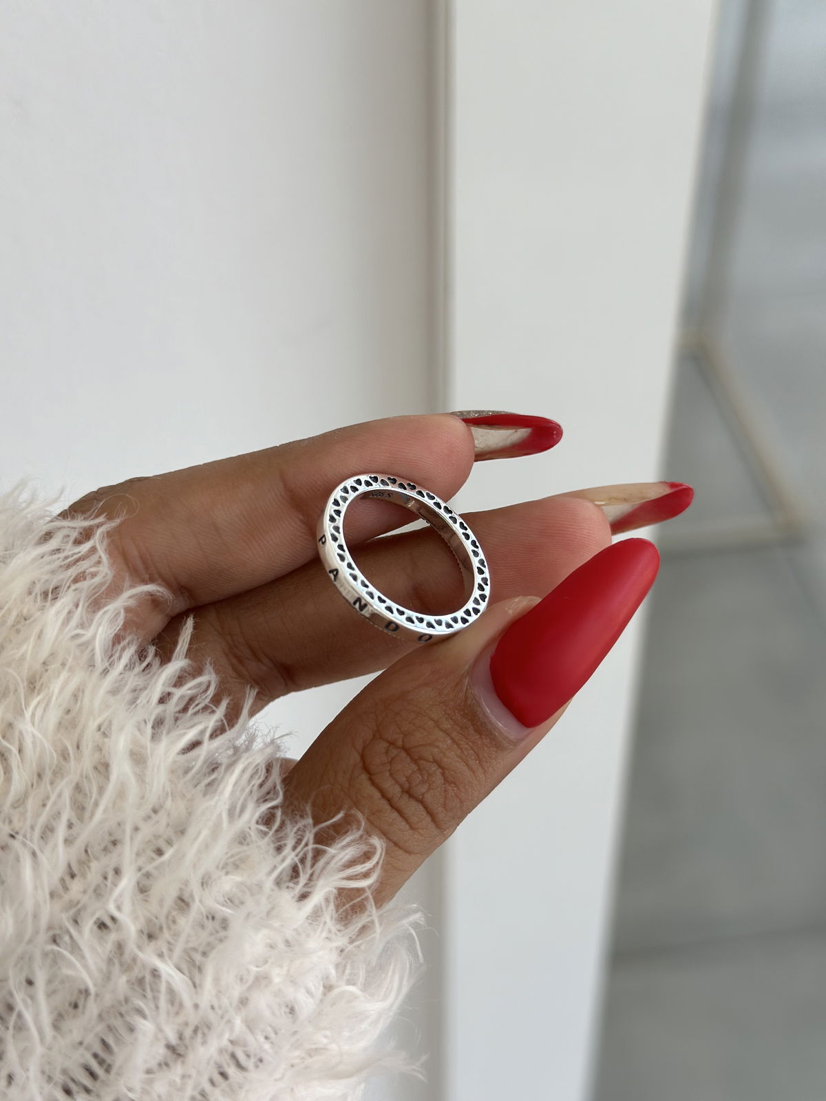Anillo Pandora, 17mm plata925, lado con corazones y lado con brillo.