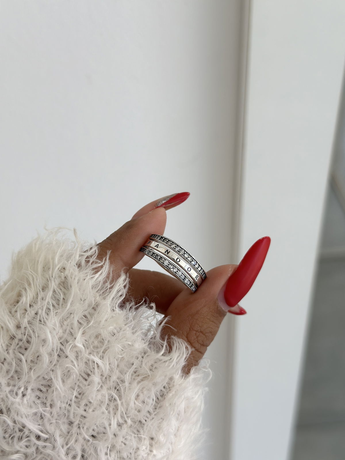 Anillo triple giratorio con brillo Pandora, 17mm plata925.