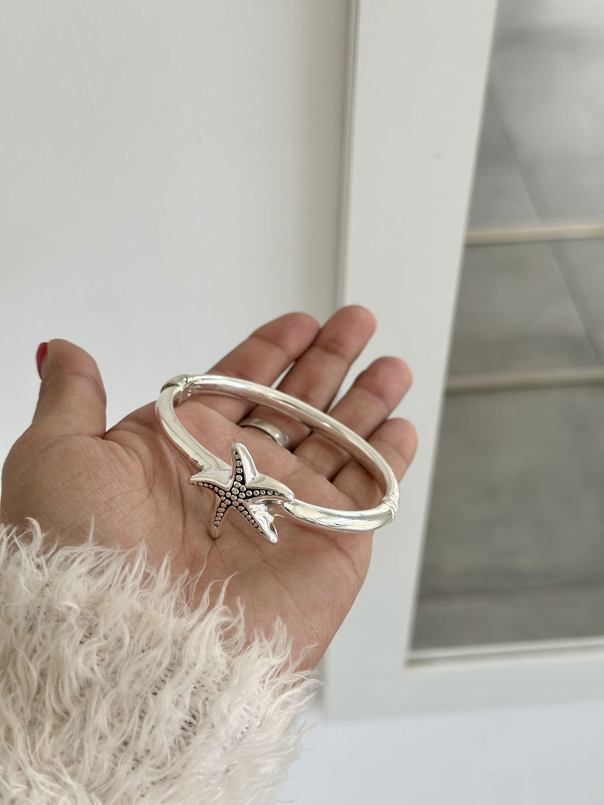 Esclava Plata inflada, cierre tipo pinza, 6cm de diámetro.