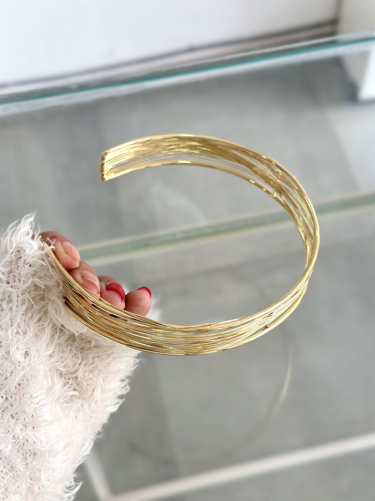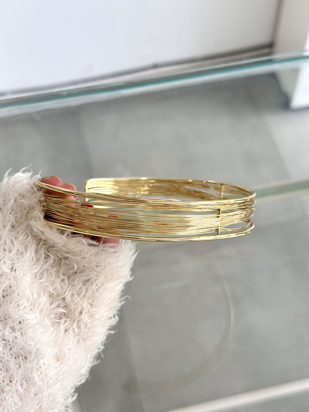 Gargantilla rígida líneas acero dorado.