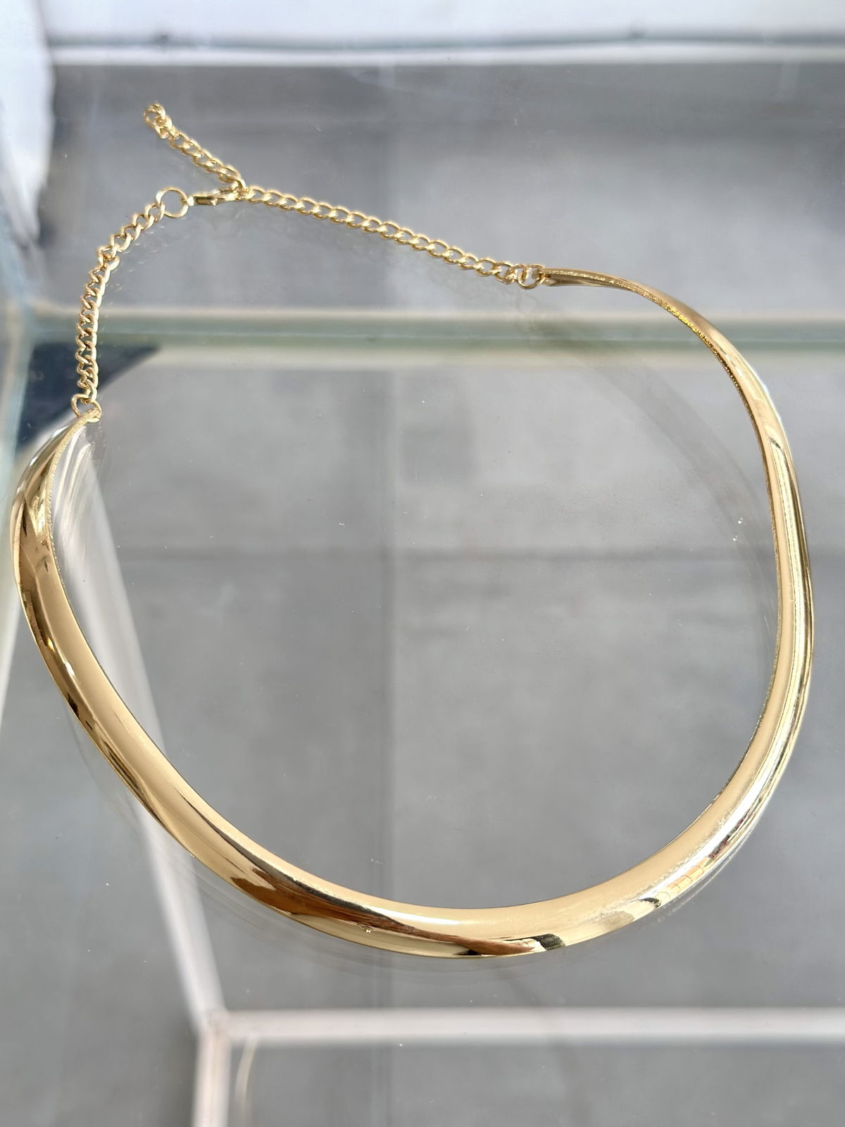 Gargantilla rígida lisa acero dorado, 45cm.