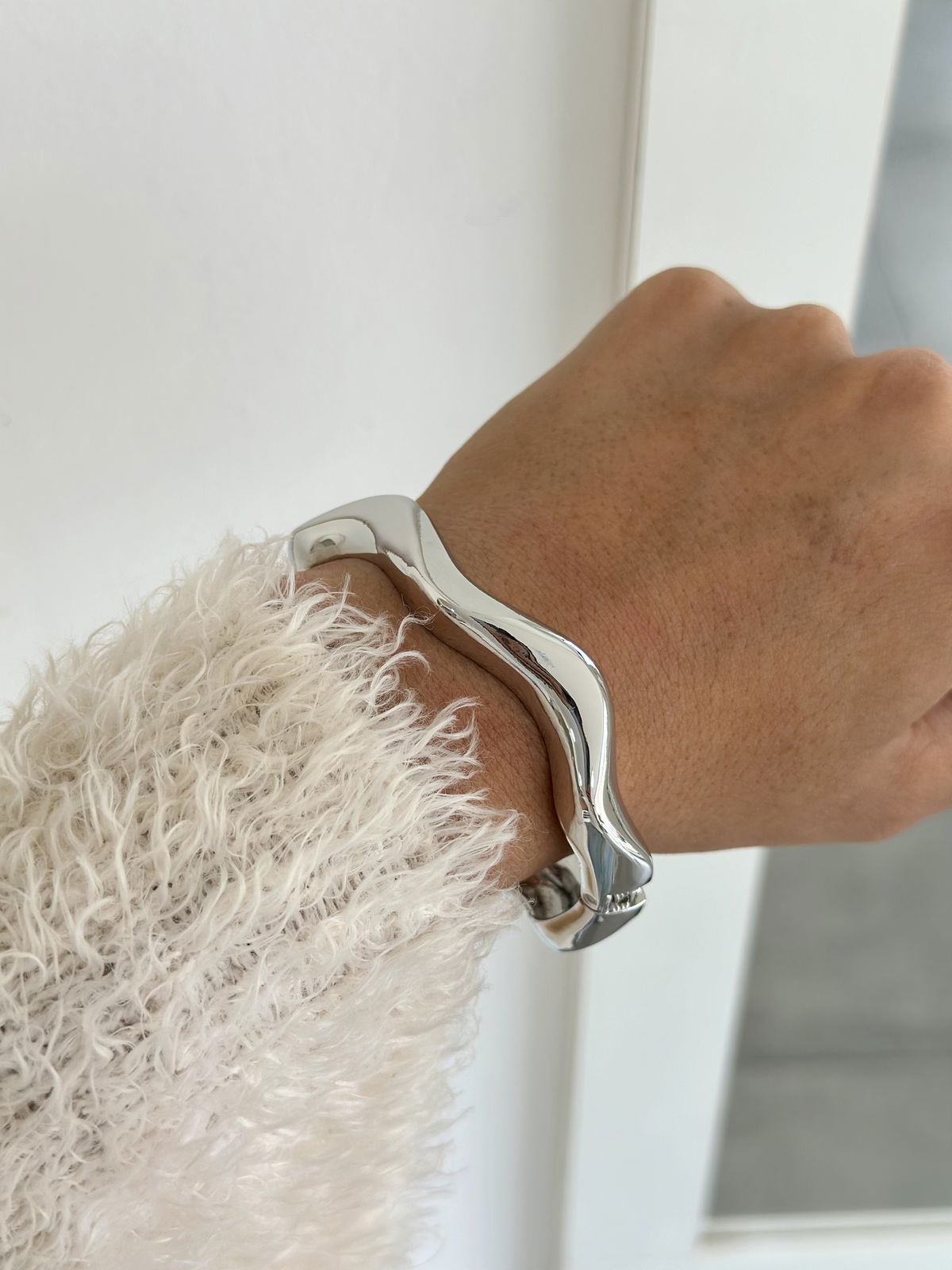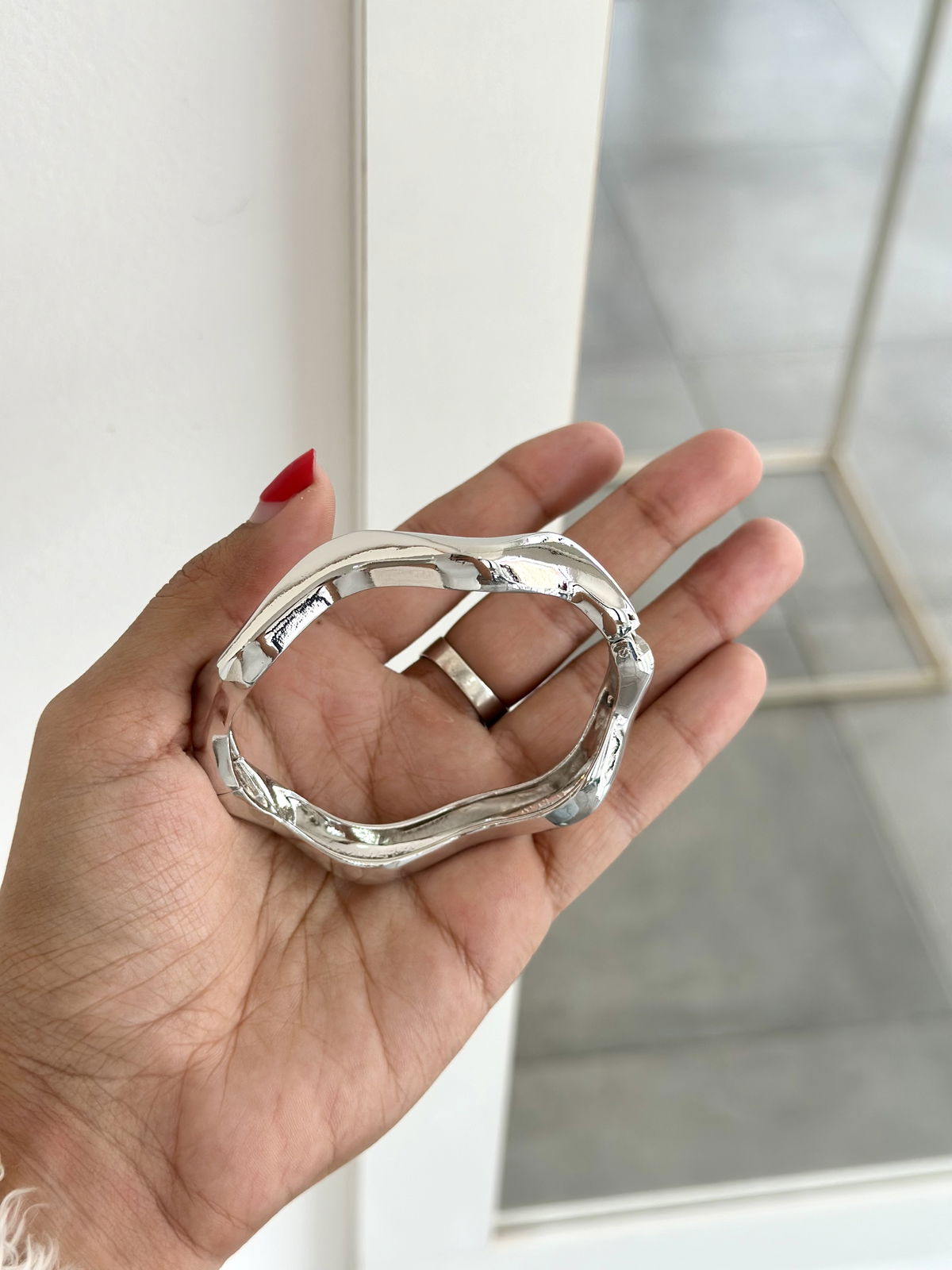 Brazalete cierre tipo pinza acero quirúrgico ondulado.