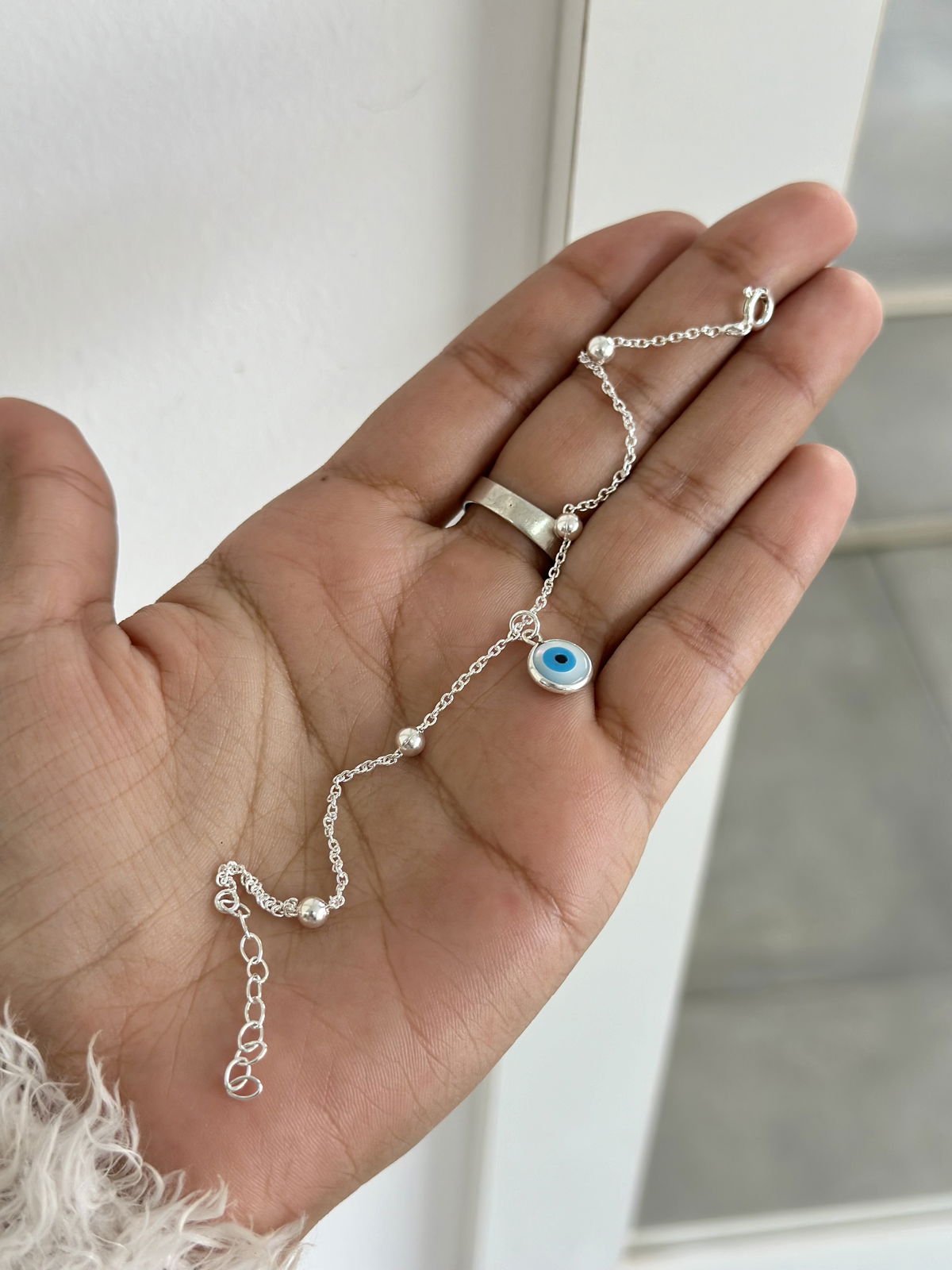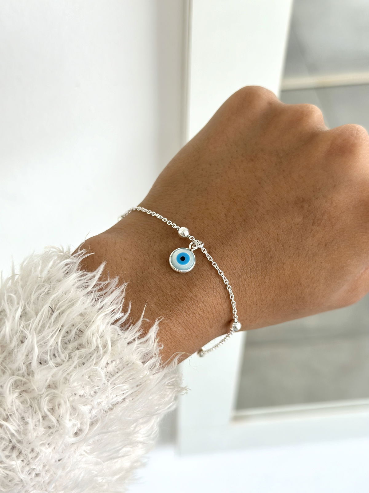 Pulsera bolitas y dije ojito turco, 21cm plata925.