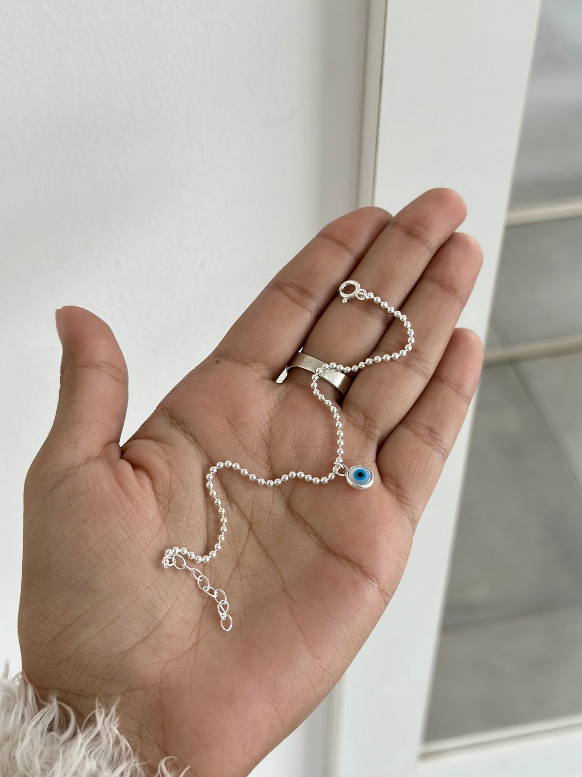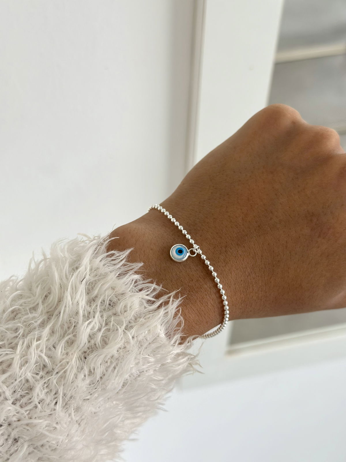 Pulsera mini bolitas con dije ojito, 20cm plata925.