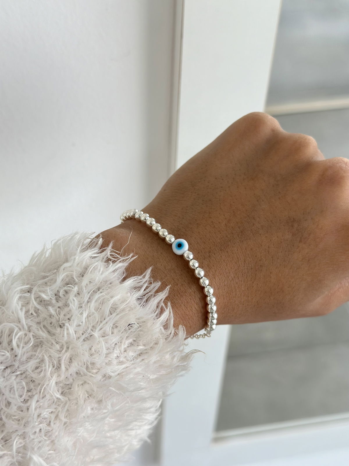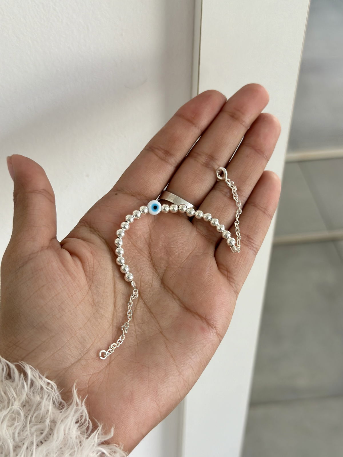 Pulsera bolitas con dije ojito, 17cm plata925.