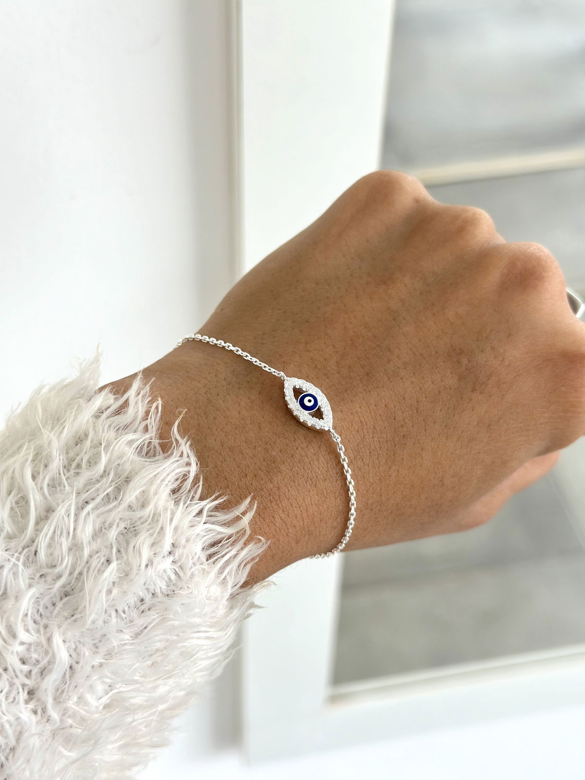 Pulsera ojito con cristales, 22cm plata925.