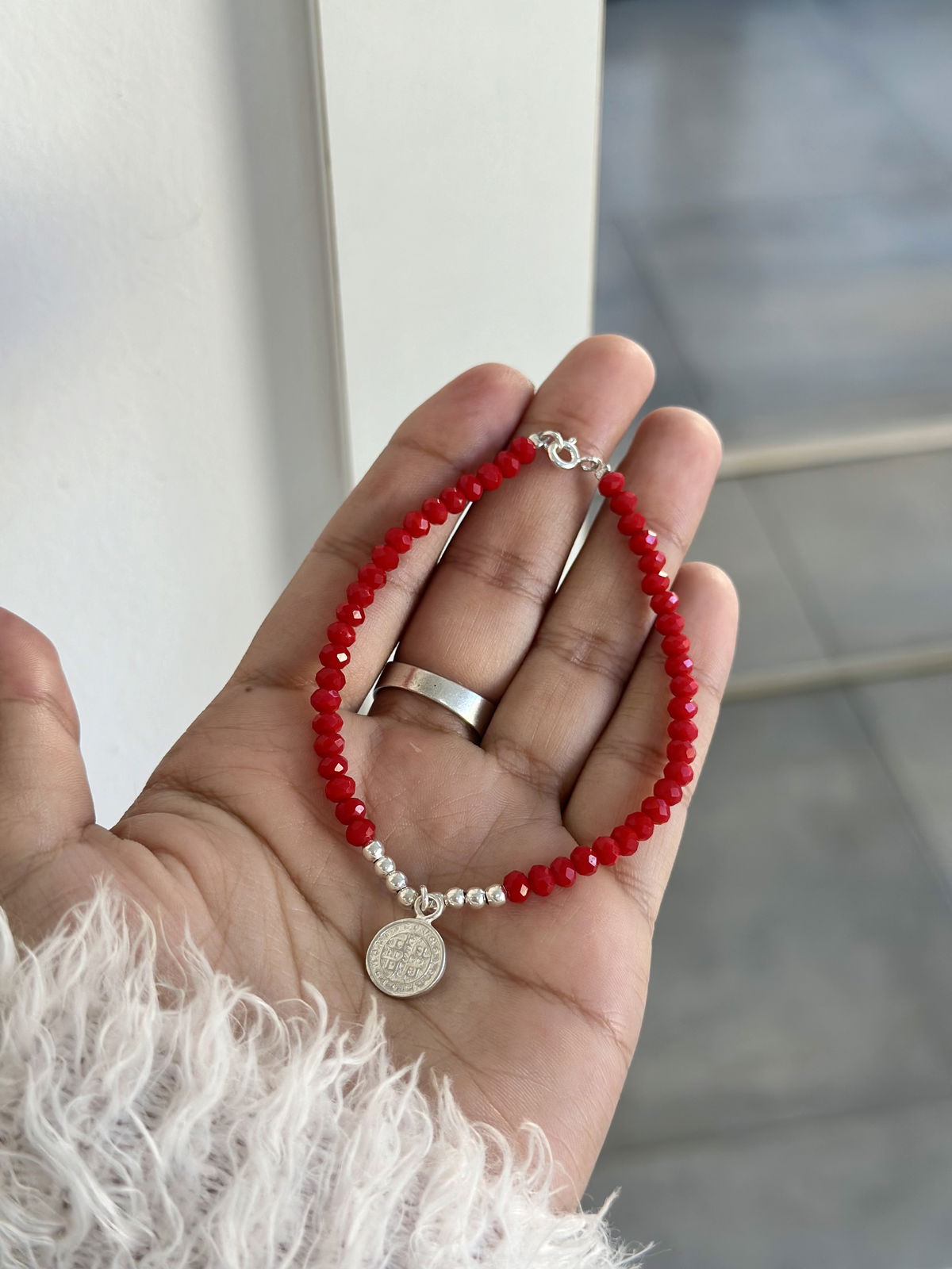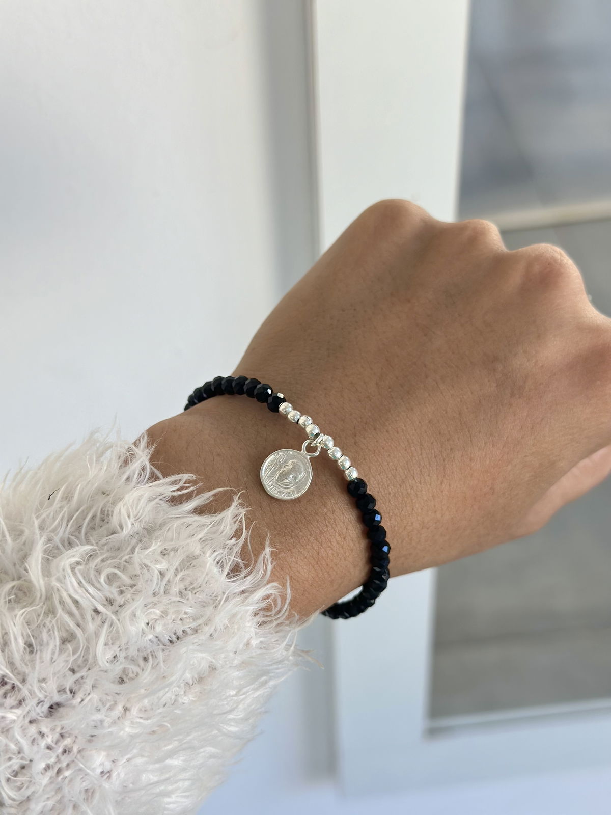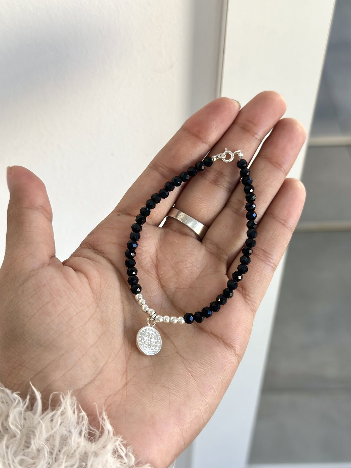 Pulsera cristal de roca con dije san Benito, 18cm plata925.