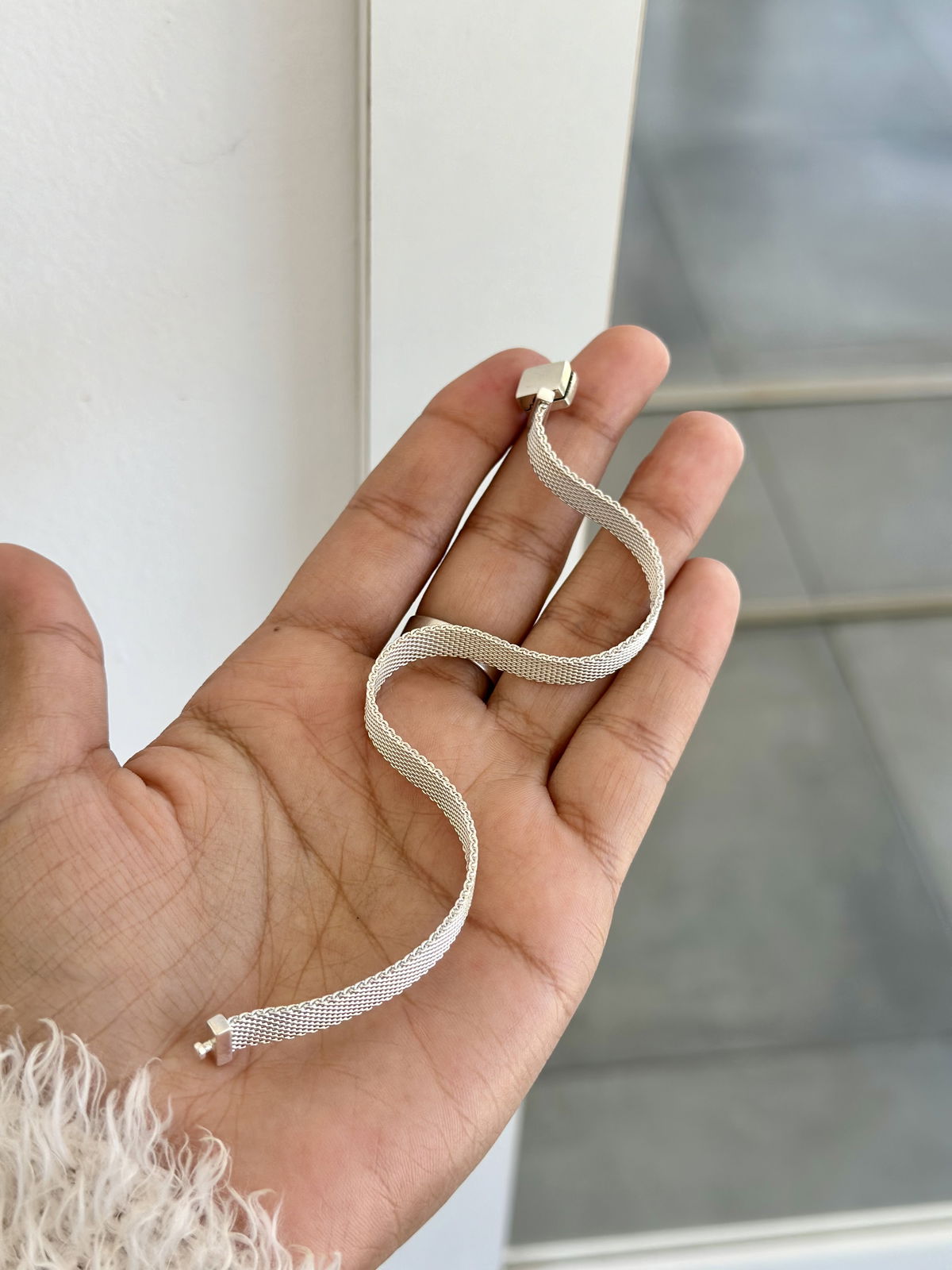 Pulsera tipo Pandora chata tejida plata925, 19cm.