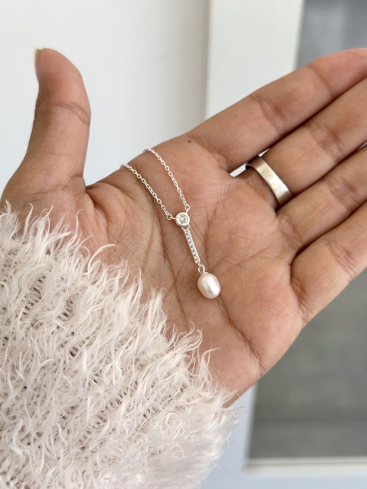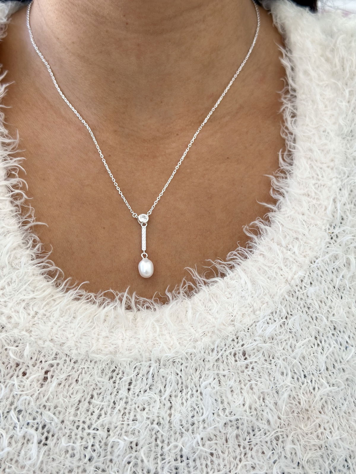 Collar Tipo corbatero con perla cultivada, 45cm plata925.