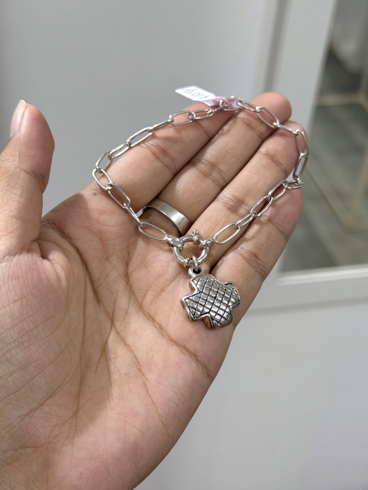 Pulsera con cierre marinero y dije Cruz plata inflada.