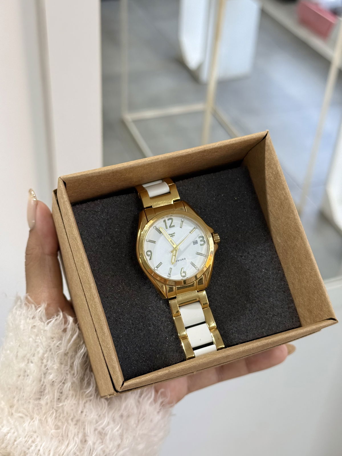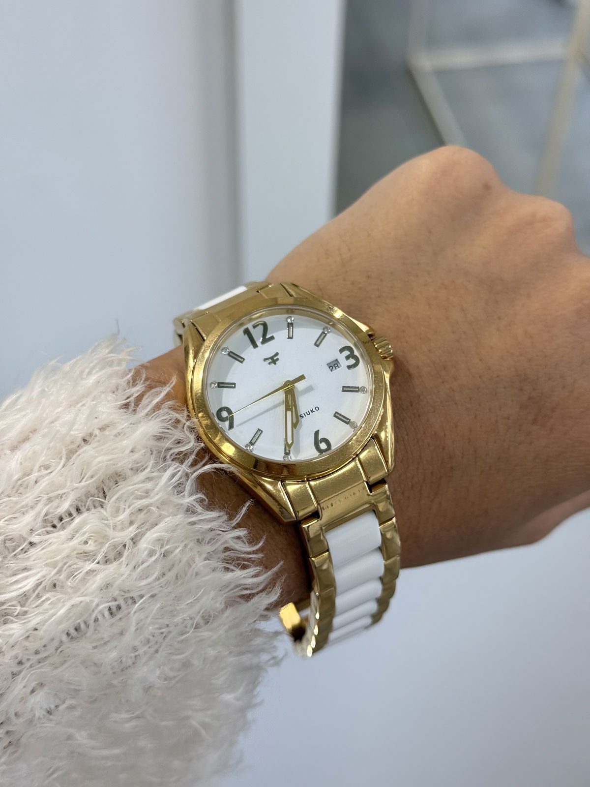 Reloj acero inoxidable con eslabones de acetato, calendario, resistencia al agua, Kosiuko.